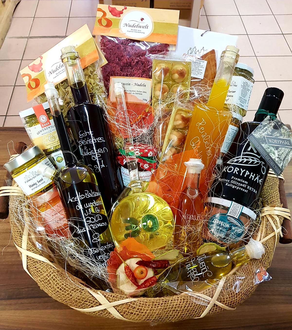 Wir stellen Ihnen Ihre individuellen Geschenkkörbe, -taschen und Kartons zusammen.
